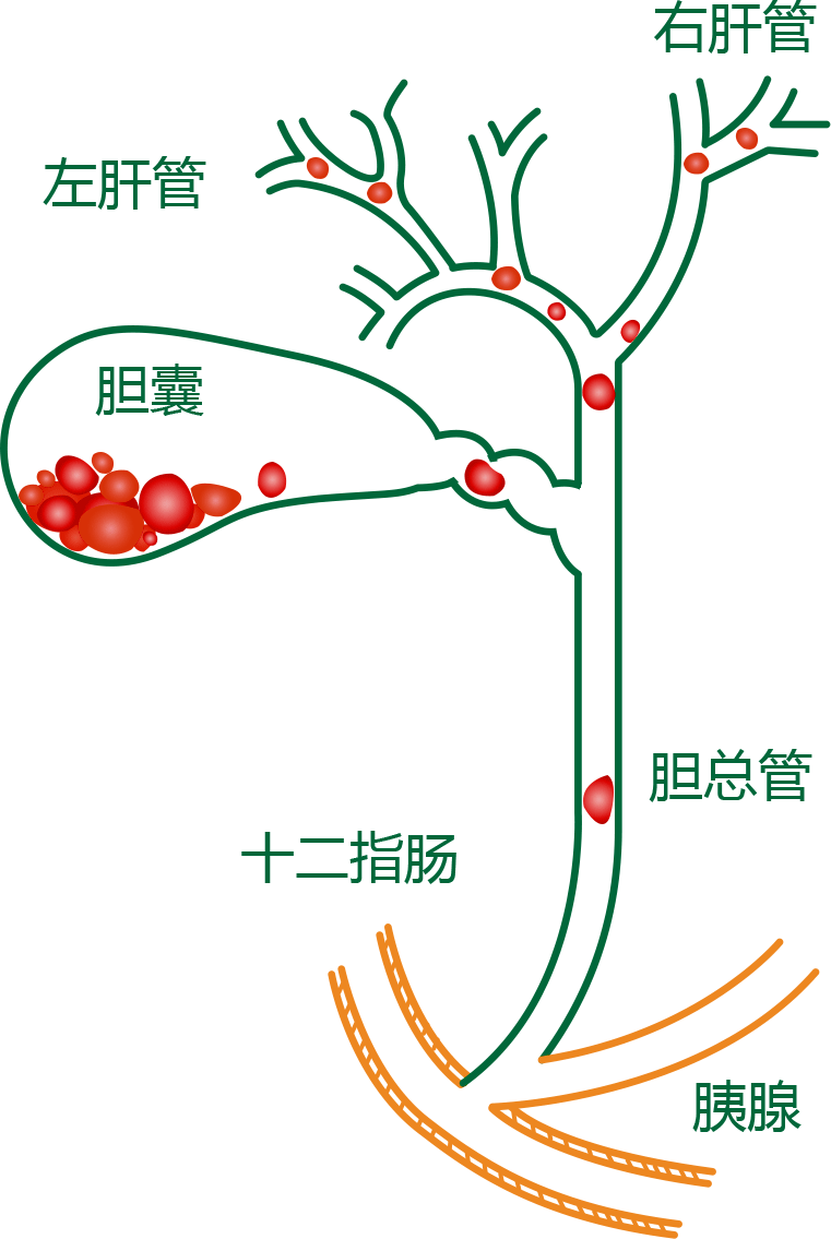 由于结石卡在胆总管里面引起胆道感染,大量细菌和毒素进入血循环,造成以肝胆系统病损为主,合并多器官损害的全身严重感染性疾病。需要注意的是:可能造成肝、肾、肺、心、脑等多脏器功能衰竭。